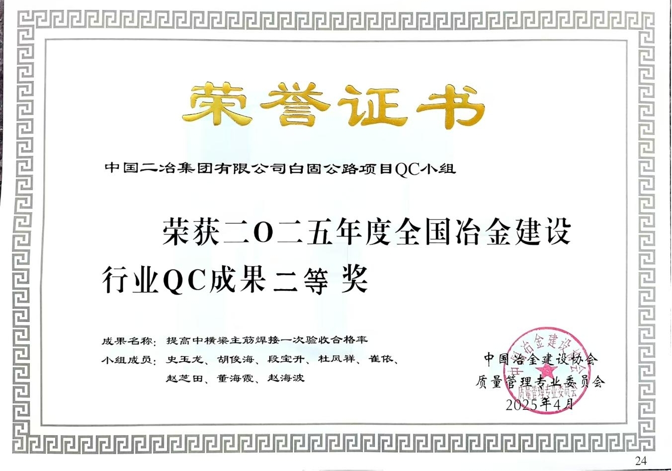近日,由中國冶金建設協會舉辦的2025年度冶金建設行業質量管理小組成果交流會在江蘇省無錫市召開,路橋分公司兩項QC成果分別榮獲2025年度全國冶金建設行業QC成果一等獎、二等獎。