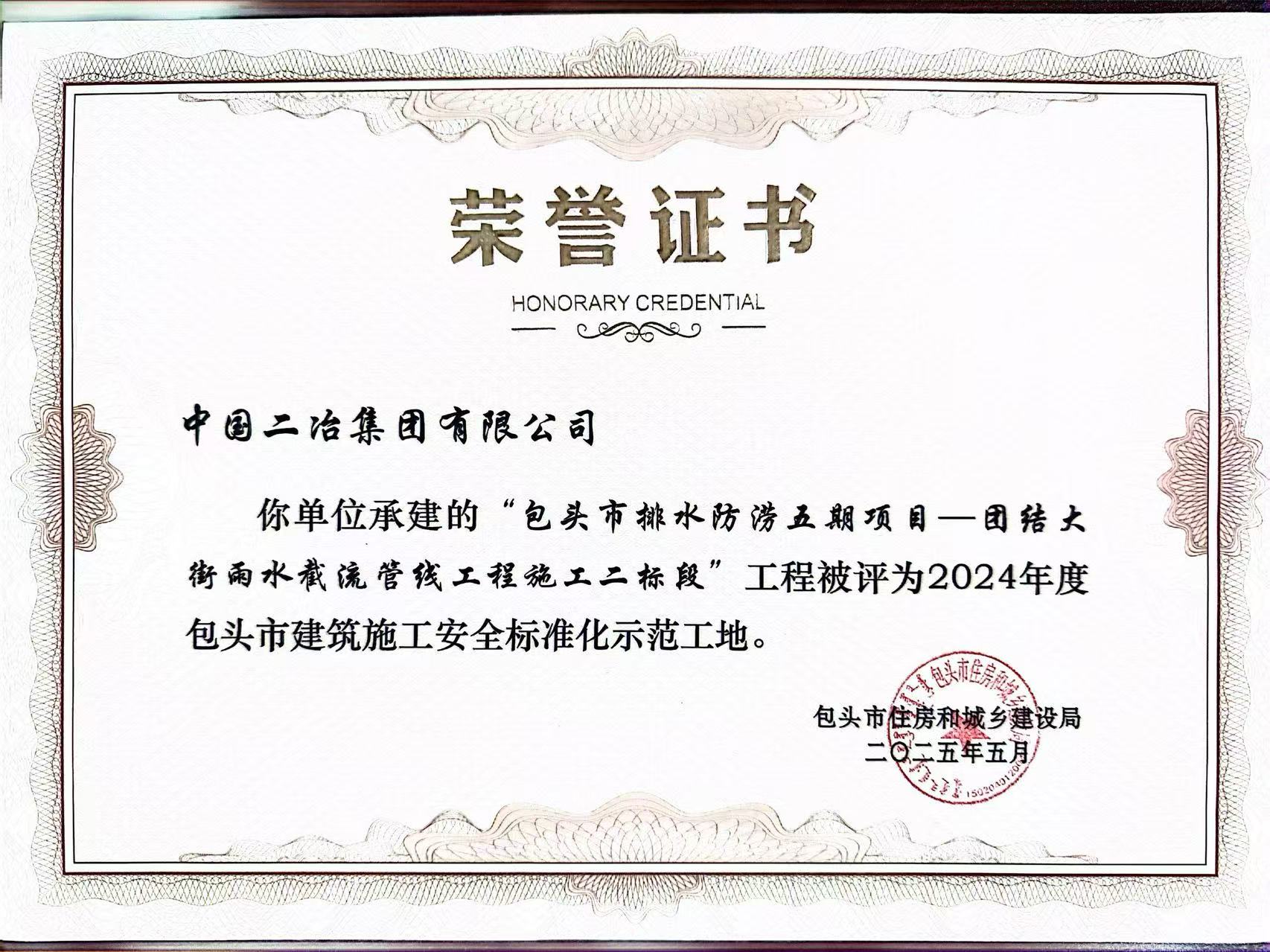 近日,包頭市住房和城鄉(xiāng)建設局公布2024年度市級標準化工地評選結果,由市政分公司承建的包頭市排水防澇五期項目——團結大街雨水截流管線工程施工二標段項目憑借高標準的安全文明施工、精細化的工程管理和綠色環(huán)保的施工理念,成功獲評“包頭市建筑施工安全標準化示范工地”稱號,成為分公司標準化建設的標桿項目。
