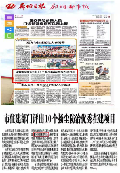 7月7日,從廊坊市住建局獲悉,中國二冶城建分公司河北霸州市國蘊城項目榮獲廊坊市揚塵防治優(yōu)秀在建項目?!独确蝗請?mdash;—綜合新聞》以題為《市住建部門評出10個揚塵防治優(yōu)秀在建項目》進行跟蹤報道,并進行公布。