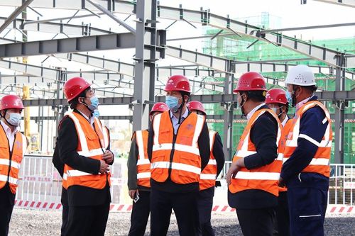 期間,陳建光赴中國二冶大地熊項目帶班檢查,聽取項目概況、項目管理、安全生產、疫情防控、黨的建設等情況匯報,并強調要按照屬地政府要求做好工地疫情防控,從嚴從實從細落實安全生產各項舉措,確保工地施工規范安全、項目順利履約。