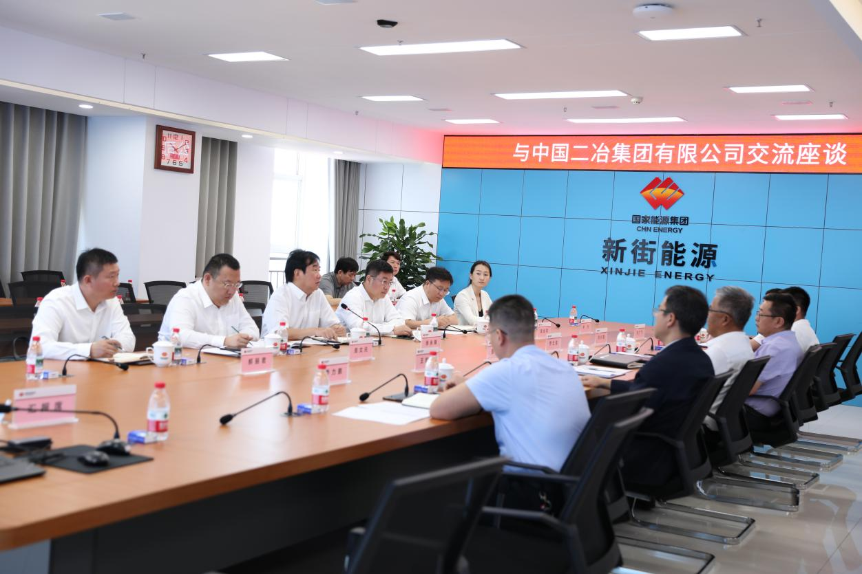 7月3日,中國二冶黨委書記、董事長徐永鋒,總經理、黨委副書記耿永旺一行拜訪神華新街能源公司黨委書記、董事長彭巍,雙方就加強溝通探討、深化業務合作進行座談交流。